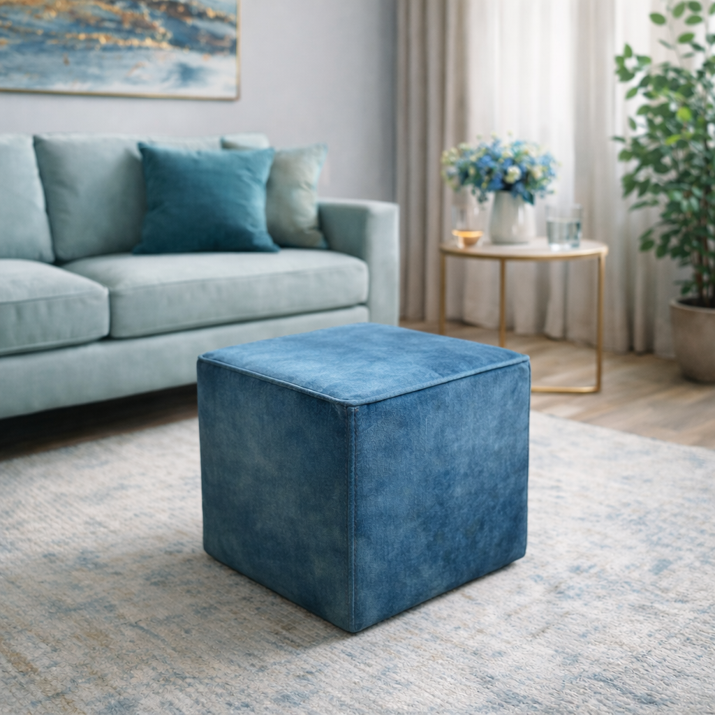 Elegáns megjelenésével és sokoldalú használhatóságával ez a kék bársony ülőkocka tökéletes kiegészítője lehet nappalidnak, hálószobádnak vagy akár előszobádnak is. Letisztult, modern formája könnyedén illeszkedik különböző lakberendezési stílusokhoz, miközben kényelmes extra ülőhelyként vagy lábtartóként is szolgál.